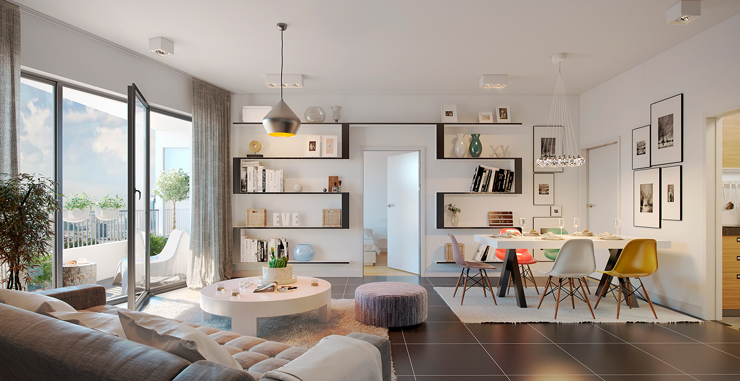 Canal Wharf offers dwelling units for all tastes, from studio to 3 bedroom apartment. All come with terrace or private balcony. The most demanding buyers can select the through apartments facing the canal, with a breath-taking view of the old quays converted into a pedestrian zone and the future park.