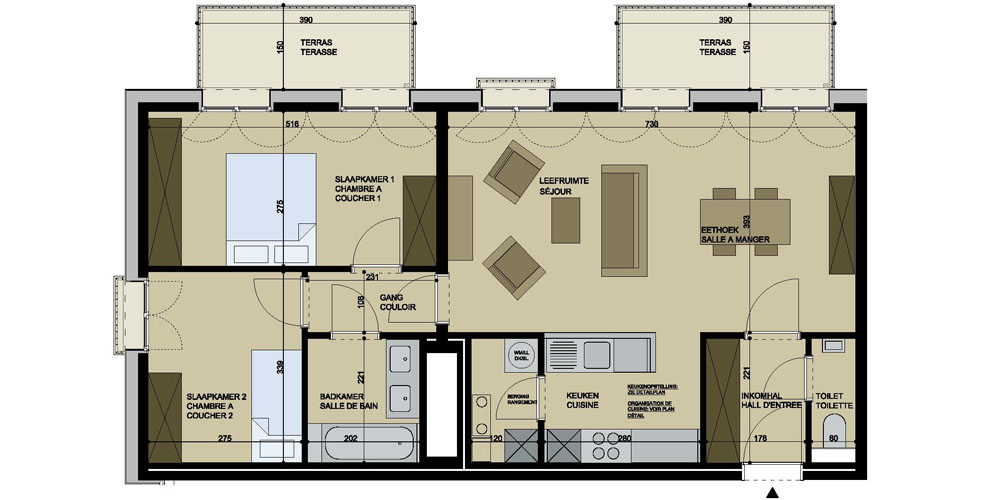 The dwelling units in the Canal Wharf projects meet the PEB Passive standards in force in 2015 in the Brussels-Capital Region. The various buildings are fitted with a ventilation system type D, common to the entire building.This ensures you to benefit from a constant fresh and filtered air in your apartment.