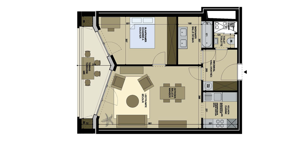 Canal Wharf offers dwelling units for all tastes, from studio to 3 bedroom apartment. All come with terrace or private balcony. The most demanding buyers can select the through apartments facing the canal, with a breath-taking view of the old quays converted into a pedestrian zone and the future park.